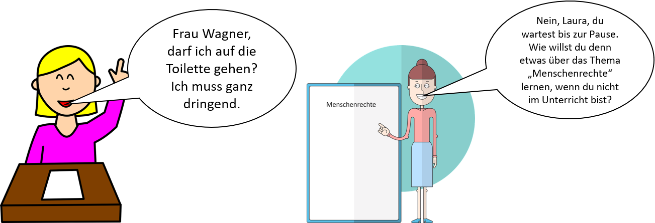 Nicht nur aus den gesetzlichen Rahmenbedingungen, sondern auch aus einer moralischen Grundverantwortung heraus ist es wichtig, dass Kinder und Jugendliche ein Verständnis für und einen kompetenten Umgang mit Grund- und Menschenrechten erlernen. Die Achtung der Menschenrechte bildet einen fundamentalen Beitrag zu einer friedlichen und wertschätzenden Gesellschaft. Zu oft werden Menschenrechte auf unserer Welt missachtet. Es ist daher essenziell, Menschenrechte nicht nur in der Schule fächerübergreifend zu behandeln und ihnen Raum zu geben, sondern sie im schulischen Alltag wirksam werden zu lassen. Hier sind insbesondere die Lehrkräfte in der Verantwortung, eine Schulumgebung zu schaffen, in der dies verwirklicht werden kann. Dies sollte sich insbesondere in ihrer pädagogischen Haltung widerspiegeln.